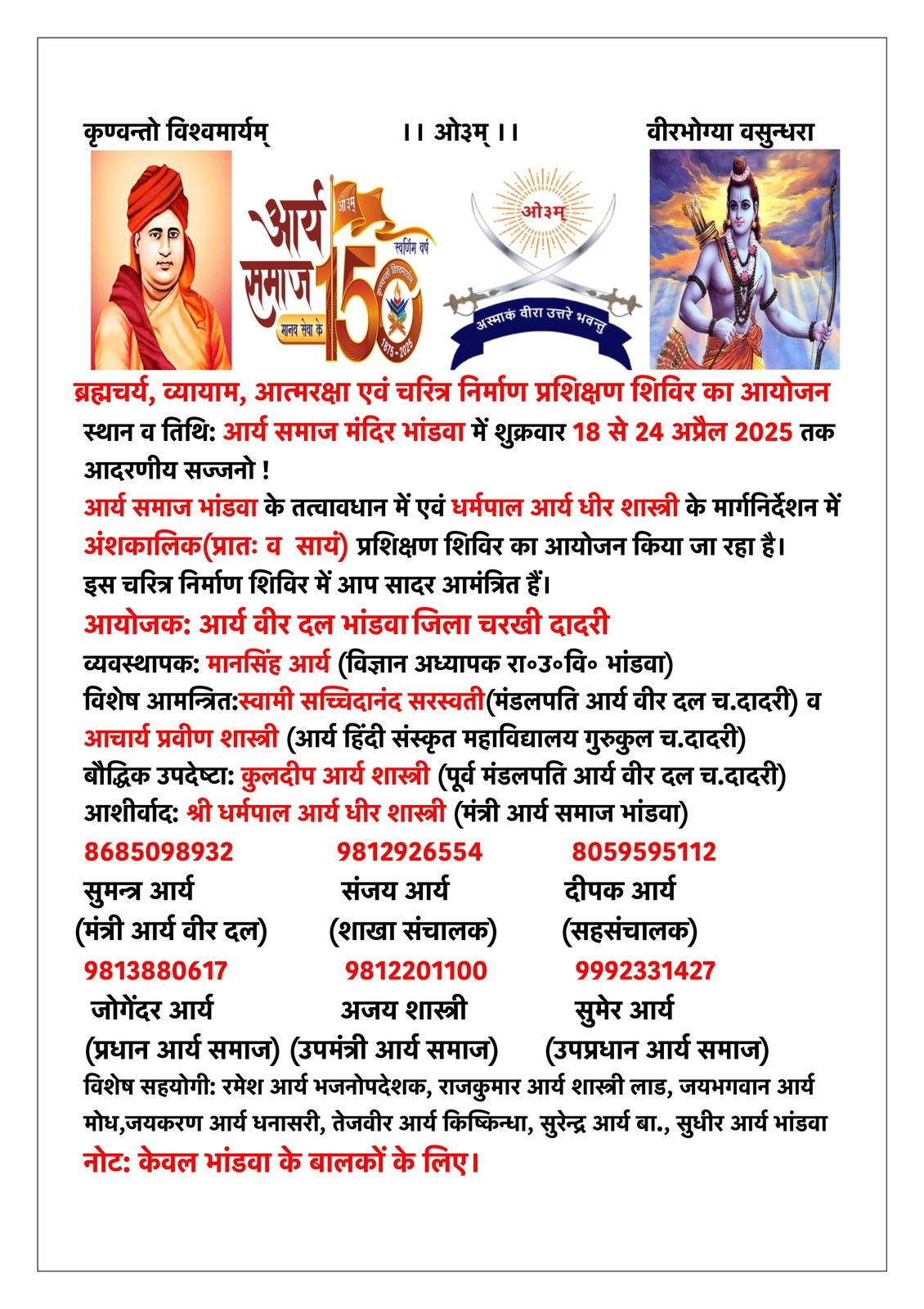 व्यायाम प्रशिक्षण एवं चरित्र निर्माण संस्कार शिविर